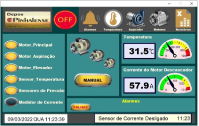 The UFLA patent presents an innovation by automating this process, through an intelligent pressure control system that optimizes suction, avoiding grain loss. In addition, an automated system for monitoring, detecting and locating faults was developed, which monitors variables such as voltage, current, pressure and temperature, identifying problems in real time. The system records the events in an intuitive and easy-to-interpret Human-Machine Interface (HMI), and acts with sequential interlocking of the machine, which ensures that the machine only advances to the next stage when the previous one is completed and safe, preventing damage to the equipment, the product and the operator. The HMI interface also signals to the user where there are faults so that the operator can check.